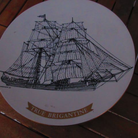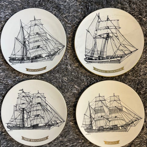 Arabian Purjehtivat kauppalaivat, Björn Landströmin piirroksen pohjalta Brigantine, numeroitu seinälautanen 292/5000. Lautasen halkaisija 29 cm.
