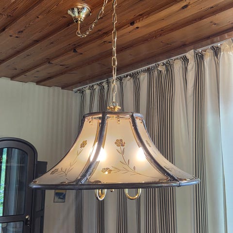 Kuvan ehjä ja toimiva rottinkilamppu myynnissä. Halkaisija 43cm ja korkeus 38cm. Pistoke kiinnitys.