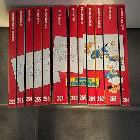 Myydään Aku Ankan taskukirjoja 13 kpl. Numerot 226-238. Kirjat ovat hyväkuntoisia.