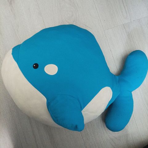 Todella hyvä kuntoinen pehmolelu. Sarvessa on hopeeta glitteriä ja valaan vatsa on hieman vaaleanpunainen.