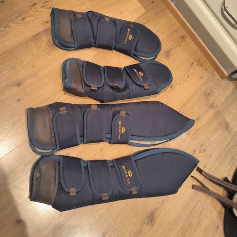Koko setti sisältää etu ja takajalan suojat sekä häntäsuojan. Koko L. Sisältää kuljetuspussin