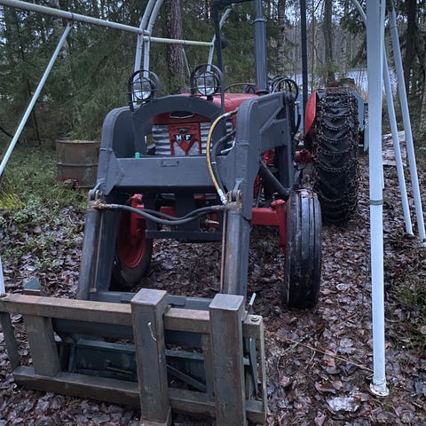 International 533. Takapotku. Tieliikenne kelpoinen. (Rekisterissä). Uusittu laturi ja hihna. Akku uudehko. Takarenkaan sisäkumi uusi. Lisätyövalot. Letkulämmitin. Kilsoja takana on riittävästi, km mittari ei pelaa. Muuten ok. Kyläsepän tekemät ovet pleksilaseilla. Pienellä rempalla myös sisäpuhallin pelaamaan.. Tästä valmis paketti pieniin lumitöihin.. samaan pakettiin ketjut, takalana, linko, vs akseli, trukkinostin(vika).