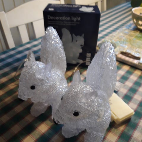 Kaksi pientä oravaa esim. joulu- tai yövaloksi. Nouto.
