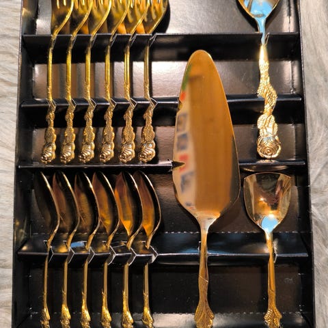 6 kpl pieniä hopeoituja ruotsalaisia kahvilusikoita 10,5 cm ja 1 kpl 23 karat goldplated (kullattu), Japan 10,5 cm.