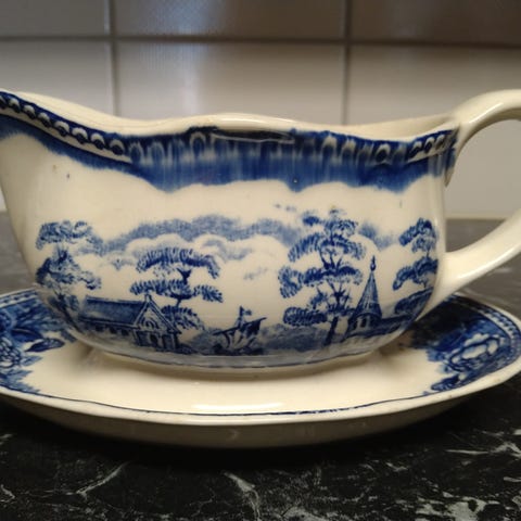 Hyväkuntoinen ja virheetön Arabian piippuleimalla varustettu kastikeastia.