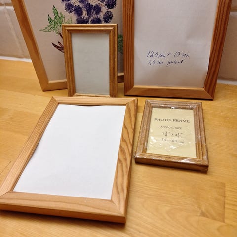 Puukehys valokuville. Valokuvat saa roikkumaan naruille pienillä pyykkipojilla. Kehyksen korkeus 67,5cm ja leveys 87,5cm