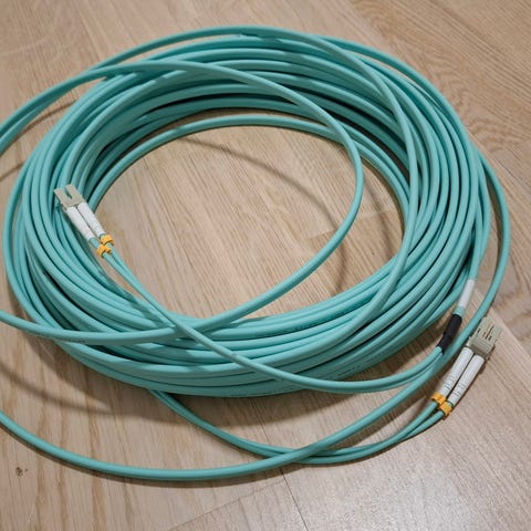 Laserilla vuototestattu viiden metrin valokuitukaapeli. LC duplex -liittimestä SC duplex -liittimeen. Single Mode, mittoja ei ole kaapelissa ilmoitettu. SFP-moduuleita sekä lisää valokuitua myös saatavilla.