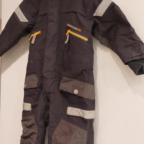 Todella siisti toppapuku vain polvissa hieman kulumaa. Hyvä lämmin haalari. Extend size eli kokoa voi suurentaa avaamalla neulokset hihoista ja lahkeista. Lahkeista nämä on avattu. Hihoissa vielä avattavissa.