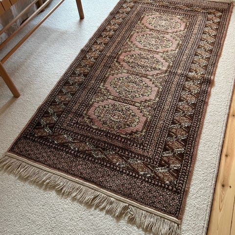 Uusi käsinkudottu matto villaa, jossa joukossa hieman puuvillaa ja polyesteriä. CURB on kudottu eri paksuisista meleeratuista langoista, jotka tekevät yksivärisen maton pinnasta elävän. Meleerattu väri tekee matosta vähemmän herkän tahroille.