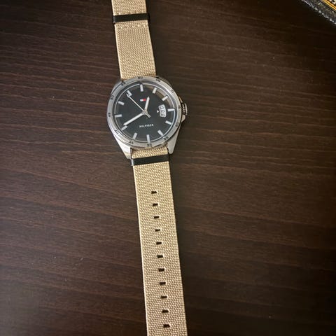 Tommy Hilfiger Men’s 100% stainless steel watch. Vedenkestävä, vaihtoranneke mukana. Rannekkeet kroko-kuvioiset. Päivämäärä näyttö ( viikonpäivä, kuukausi, tunti eri taulut) sekuntikello. Kellossa valkoinen ranneke tällä hetkellä, musta tulee kaupan päälle.