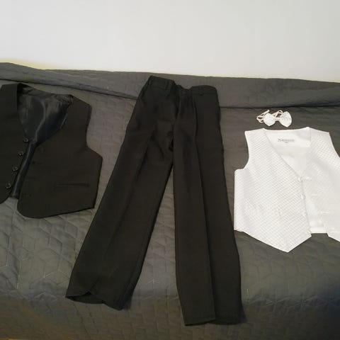 Hyväkuntoisia kauluspaitoja ja mustat kangashousut kokoa 122-128cm