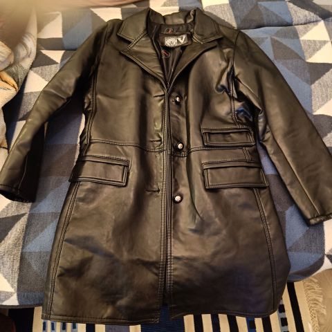 Hyväkuntoinen Onlyn oversize tekonahkainen takki, koko L. Takki ollut vain kerran työmatkalla päällä. Helmassa edessä koristevyö. Edessä alhaalla napillinen ja vetoketjullinen umpitasku. Sivuilla vetoketjulliset taskut. Hihansuissa vetoketju. Ei ollut itselle sopiva. Koiratalous. Hinta sisältää postikulut.