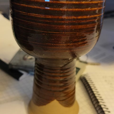 Myynnissä upea design-esine, joka on Pirjo Nylanderin 1960-luvun tuotantoa. Tämä ainutlaatuinen pikarimaljakko on erinomainen lisä mid-century modern (MCM) -kokoelmaan. Signeeraus kulunut, mutta vertaillessa Nylanderin signeeraukseen, ja muihin esineisiin, on Pirjo Nylanderin.