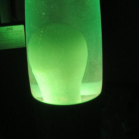 Laavalamppu harjattua alumiinia, moderni ja futuristinen.