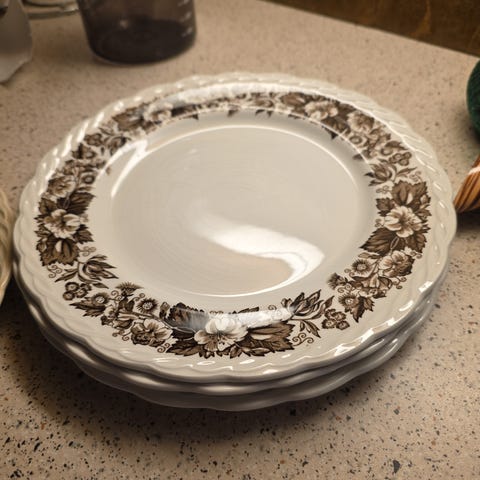 Ylimääräistä lautasta uuteen kotiin elikkä kuvassa takana olevia ruokailulautasin on 3 kpl,syviä lautasia 4 kpl ja pienempiä ns kakkulautasia on 6 kpk..Koko setti 5 €.En myy etikseen