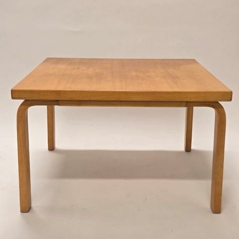 Alvar Aallon Artekille suunnittelema 120 x 120 cm sohvapöytä. Neliön muotoinen pöytä soveltuu mainosti niin sohva- tai sivupöydäksi. Runko koivua ja musta pöytälevy.