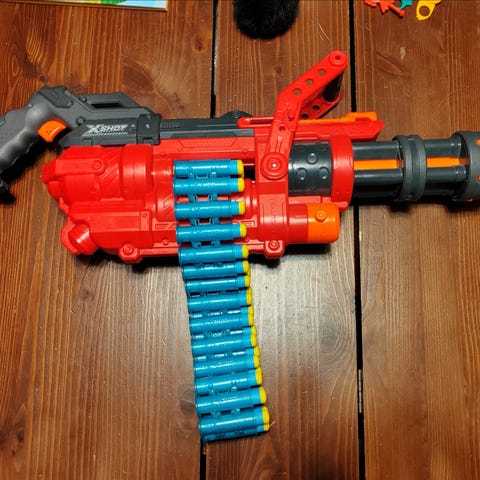 Hyviä x-shot lelupyssyjä jotka ovat hyvässä kunnossa ja mukaan panoksia.