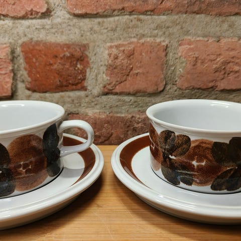 Arabia Anemone kuppi ja lautanen, 2 paria