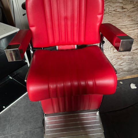 - Kampaamöpöytä jossa iso pyöreä peili sekä mm. sähköpistoke ja lamppu integroituna. Myös jalkatuki joka ei näy kuvassa (on tuolin takana).
