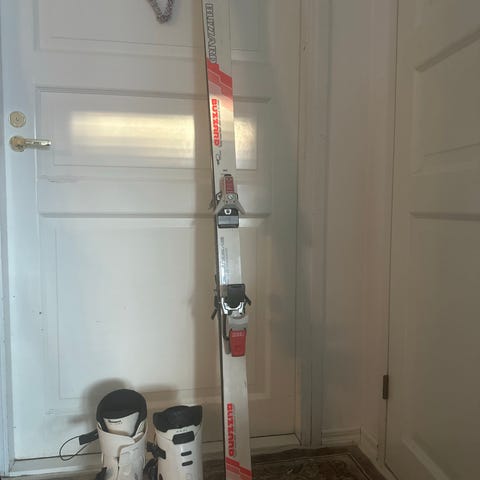 Lasten 140cm pitkät hyvässä laskukunnossa olevat retrosukset.