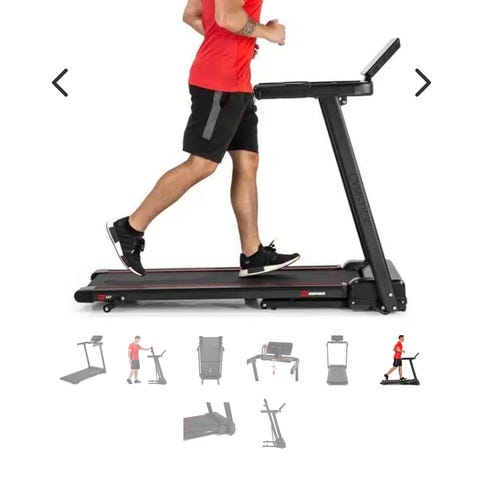 Vähällä käytöllä ollut juoksumatto. Maksiminopeus 18km/h, kaltevuuden säätö 12 asentoa. Juoksualue 130x46cm.
