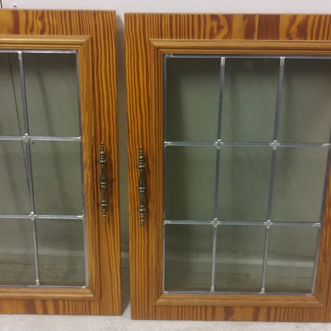 Kaksi puista sisäovea koristeellisella lasi-ikkunalla. Ikkunasta ei varsinaisesti näe läpi (sumea), mutta valo kuitenkin tulee läpi. Myydään ilman kahvoja. Moduulimitta 9x21