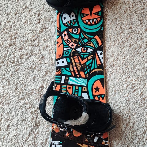 Erittäin hyvässä kunnossa oleva lauta. Laskettu alle 10 kertaa. Siteet ovat hyvässä kunnossa. Toimiva setti allmountain laskuun tai sitten suoraan parkki toimintaan. Saa tulla paikanpäälle ihmettelemään.