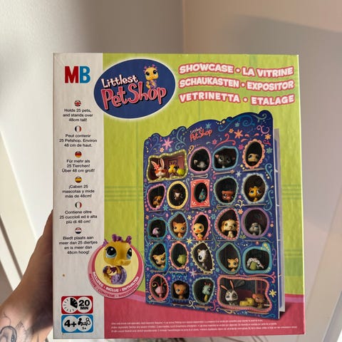 Toisen puolesta myyntiin iso peltinen Littlest Pet Shop-laatikko. Upea koriste tai säilytysrasia petseille. Sisällä pohjassa kuvioitus jossa mahdollista leikkiä. Luun muotoinen.