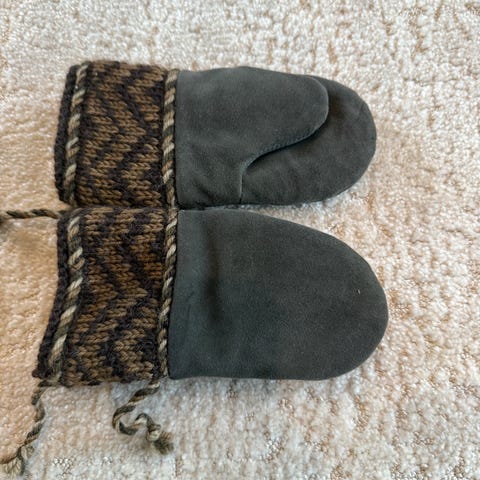 Käsin kudotut siilitumput + raitatumput 2-3 v.