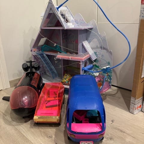 Myydään L.O.L. Surprise talo, jossa mukana kuvissa näkyvät huonekalut ja tarvikkeet.