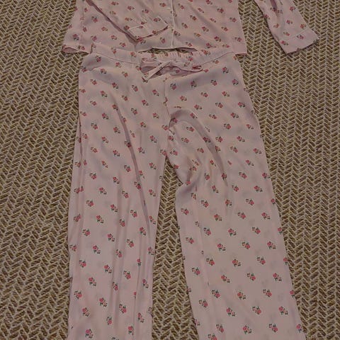 Paita trikoinen, merkki Pola. Housut merkkiä My Wear flanellihousut. Siisti setti.