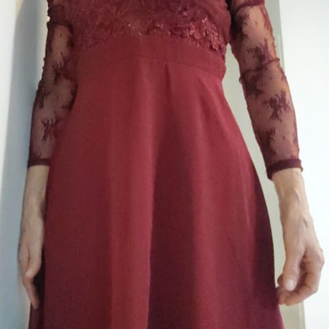 Myydään pitsisomisteinen, vuorellinen juhlamekko. Takana vetoketju. Hyvässä kunnossa. Kissatalous