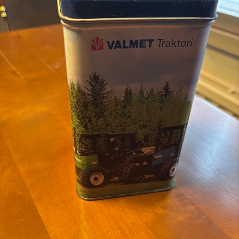 Valmetin traktori peltipurkki, käytönjälkeä löytyy vähän, mutta ei haittaa käyttöä☺️ Tästä lahja traktori fanille😉 Tarjoa rohkeasti hintaa!