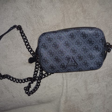 Guess crossbody olkalaukku jossa on 3 päälokeroa, 2 vetoketjukiinnitys, keskimäisessä lokerossa magneettilukko, 2 sisäistä avointa taskua ja 1 vetoketjutasku, mitat 24 x 17