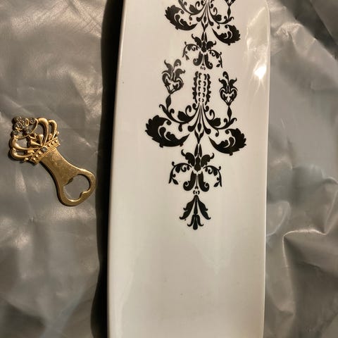 Kaunis tarjoiluvati halk 24,5 cm, kork. 5 cm. Ehjä, kultauksissa vähäisiä käytön jälki. Lampisen tuotantoa.