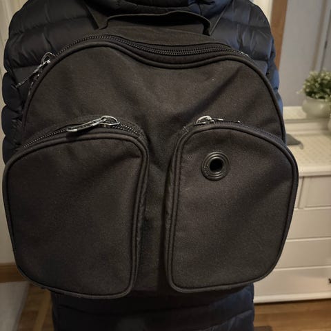 Korkeus noin 50cm, ja pohjan koko 20*20cm. Kanto hihnan pituus n. 95 cm. Sisäpuoli kankaasta hieman kosteutta kestävä. Tosi siisti kuntoinen. Ei likaa, eikä kulumia.