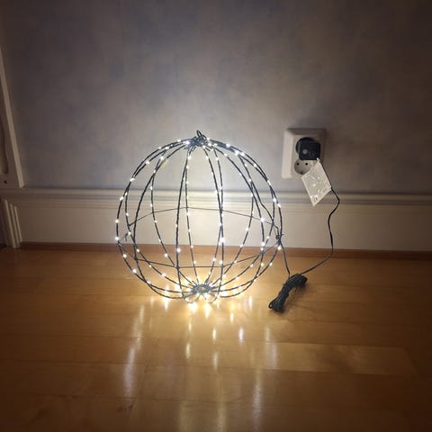 50 LED valosarja, värisävy lämmin valkoinen ja palloja on kolmea eri kokoa. Kokonaispituus 10 m josta valojen osuus 5 m ja liitäntäjohto 5 m (kirkkaalla johdolla). Tästä nyt jouluvalot / kausivalot sisä ja ulkokäyttöön. Ei ole ollut poissa paketista kuin ilmoituskuvien oton ajan eli käytännössä käyttämätön tuote.