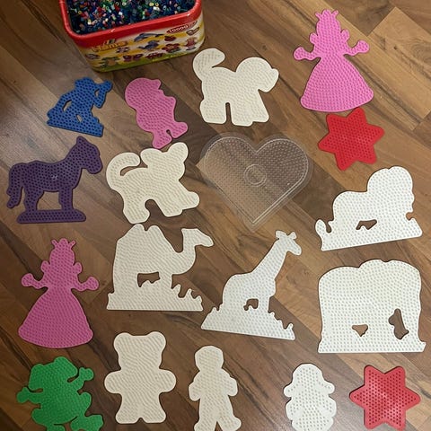 Noin 3 litraa (eli paljon) Hamahelmiä ja 10 erilaista alustaa.