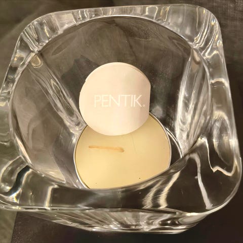 Myydään hyvässä kunnossa Pentikin kirkas lasinen tuikkukippo. 9,5cm korkeus, 9cm leveys.