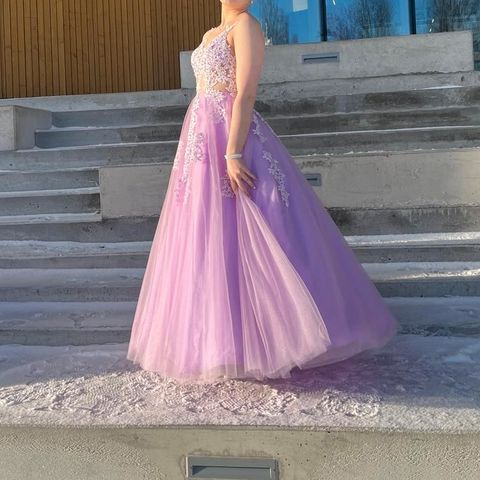 Mekko on lyhennetty 166 cm tanssijalle. Selässä on nyörit, joilla mekon kokoa voi säädellä. Kuvissa mekon alla on vannehame, joka ei tule kaupan mukana.