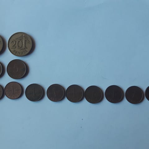 20 penniä vuosilta 1966-1990 puuttuu vuodet 67 69 70 71 71