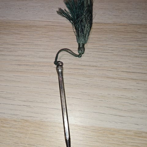 Ilmeisesti hopeinen, leimaa ei löydy . Toimiva kynä, ainut puute että klipsipidike on hävinnyt