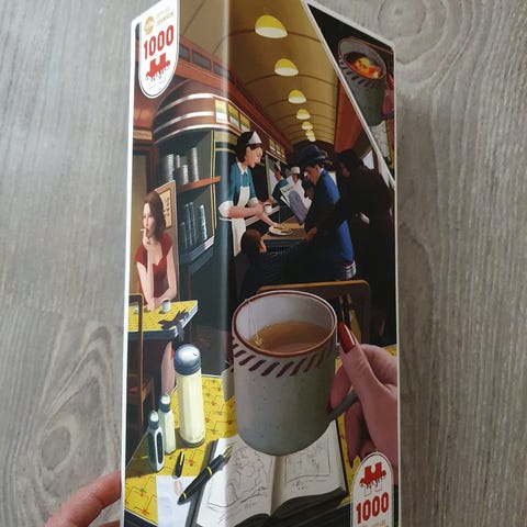 Myydään värikäs kujeileva Sébastien Féraut palapeli. Laatikossa juliste, jossa koko kuva.