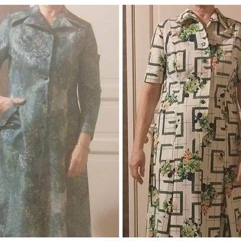 Suomessa valmistettu Carolyn-merkkiset kirjavat ja kevyet leveät housut. Koko 40. Eivät rypisty. Kuminauha vyötäröllä joten housut mahtuu 40-44 kokoiselle.