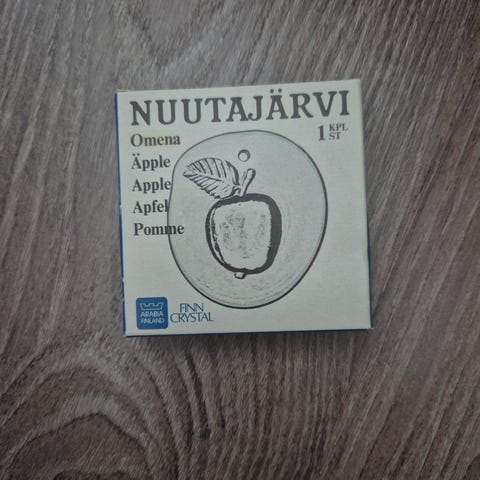 Omena-kuviointi ja vuosiluku 1979, halkaisija 7 cm. Nuutajärven tarra.