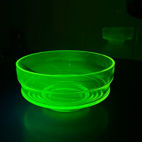 Riihimäen lasin vihreä kulho, jotain kulumaa sisäpuolella, ulkopuoli siisti. Halkaisija 18 cm. Pohjassa on varmaan ollut kanta, joka on katkennut, siksi muovitassut pohjassa. Ei keiku paljoa.