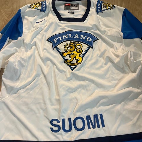 Myydään Suomen jääkiekkopelipaita. Koko L/XL. Melko pieni kuitenkin kooltaan.