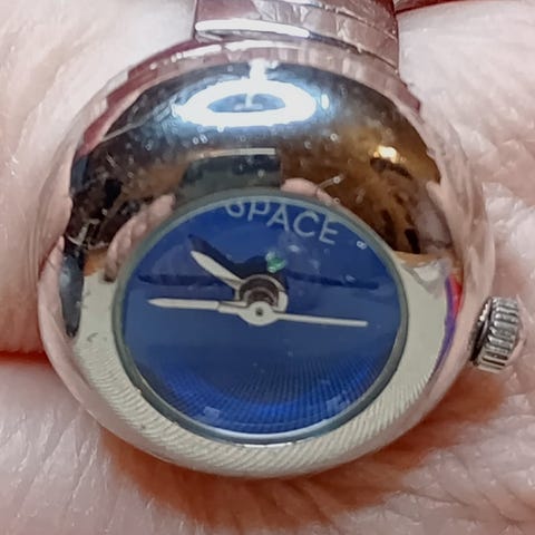 Verona Quartz -unisex sormikello. Kello on vesitiivis 30 metriin asti ja siinä on sininen kellotaulu. Ranneke on metallinen ja joustava, joten se sopii eri sormille.
