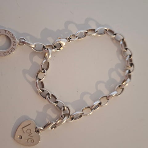 Thomas Sabo Hopea rannekoru naisille, jossa on sulkakuvioinen koriste ja säädettävä ketju. Valmistettu hopeasta. Ketjun pituus 21 cm.