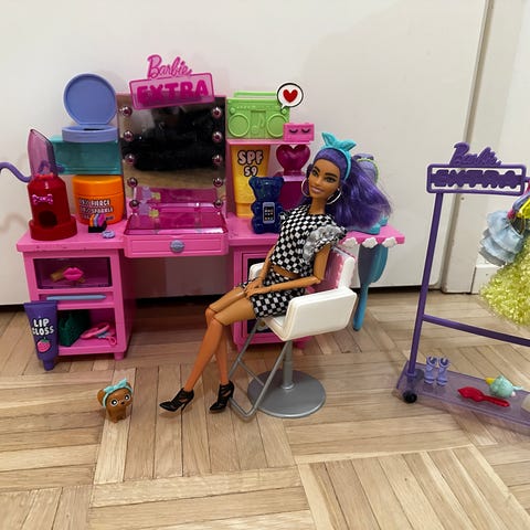 Barbie lasten lelu nukke ja meikkipöytä